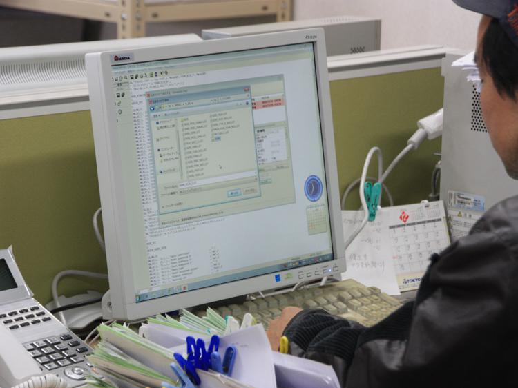 注文書より品名、図番、製作数、納期などをPCによりバーコード化し、社内全工程に生産指示を行います。